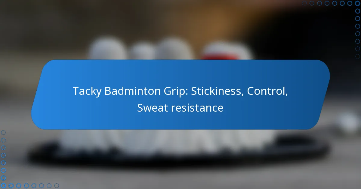 A tacky badminton grip is essential for players seeking improved stickiness and control, ensuring a secure hold on their rackets during intense matches. This grip is particularly advantageous for those who experience sweat, as it minimizes slipping and enhances overall performance. By utilizing materials that resist moisture, tacky grips allow for consistent play even in challenging conditions.